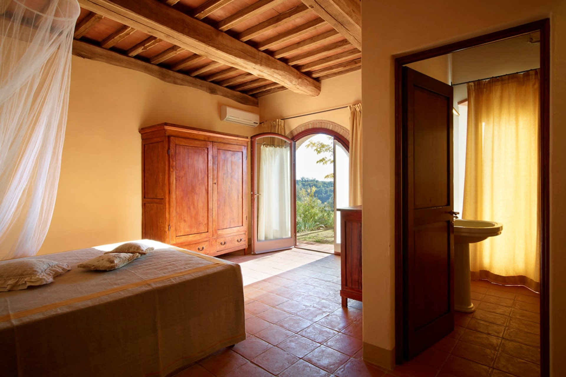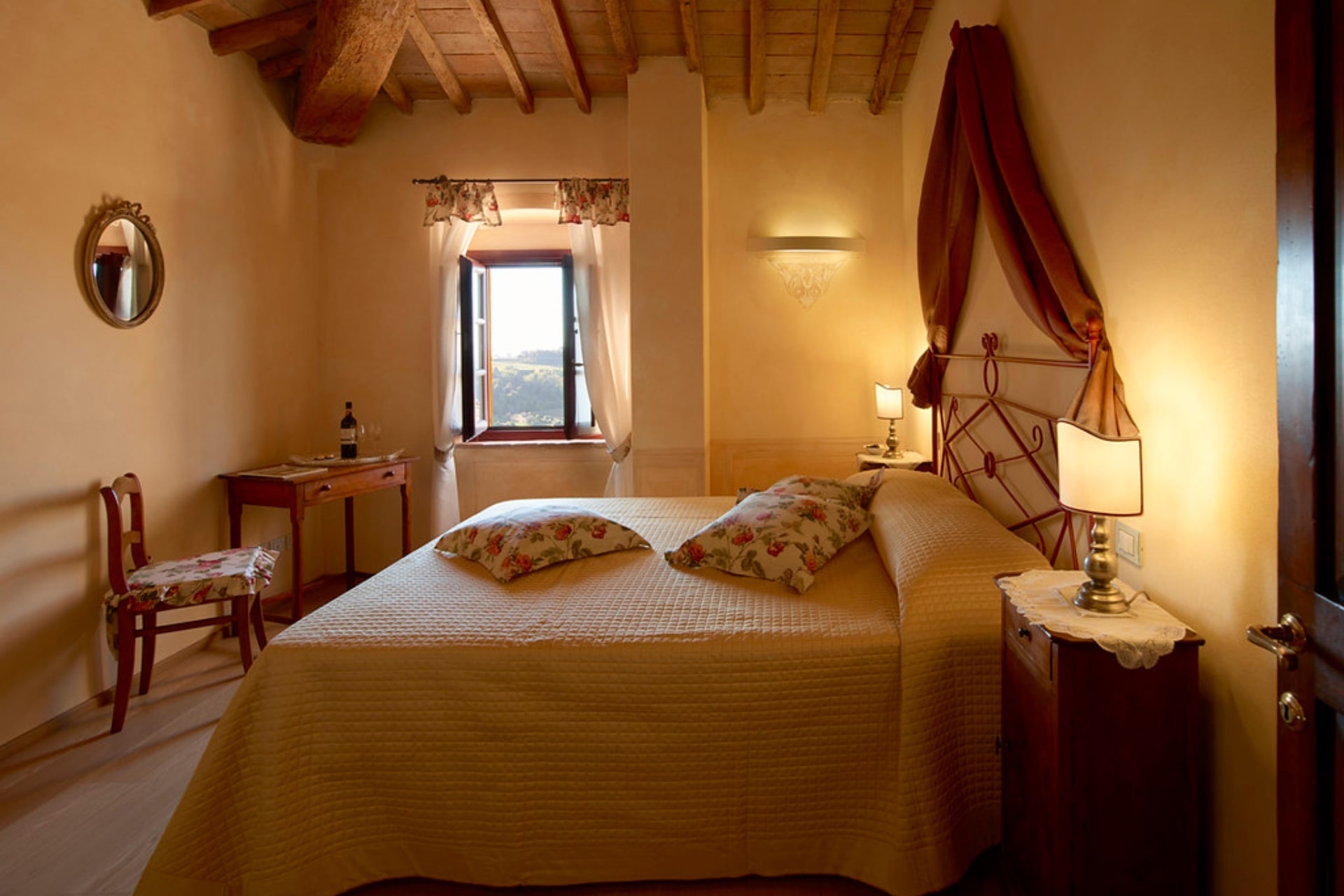 Oliva: camera con vista sulla valle che guarda le torri di San Gimignano.